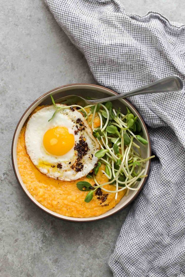 Sweet Potato soup with egg and greens