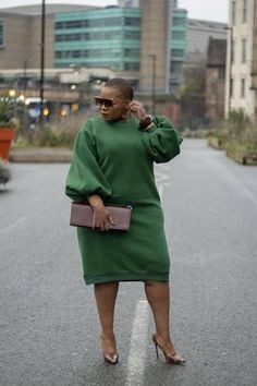 Olive green shirt dress with bell style sleeve..Trend Setter!