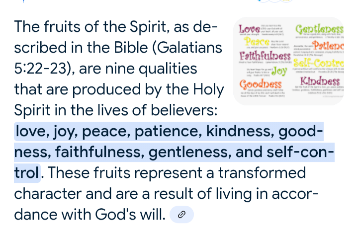 Fruits of the spirit are daily focuses for me as I walk with Jesus Christ and strive to become better each day.